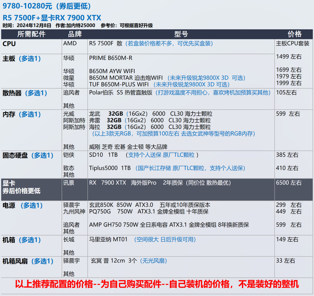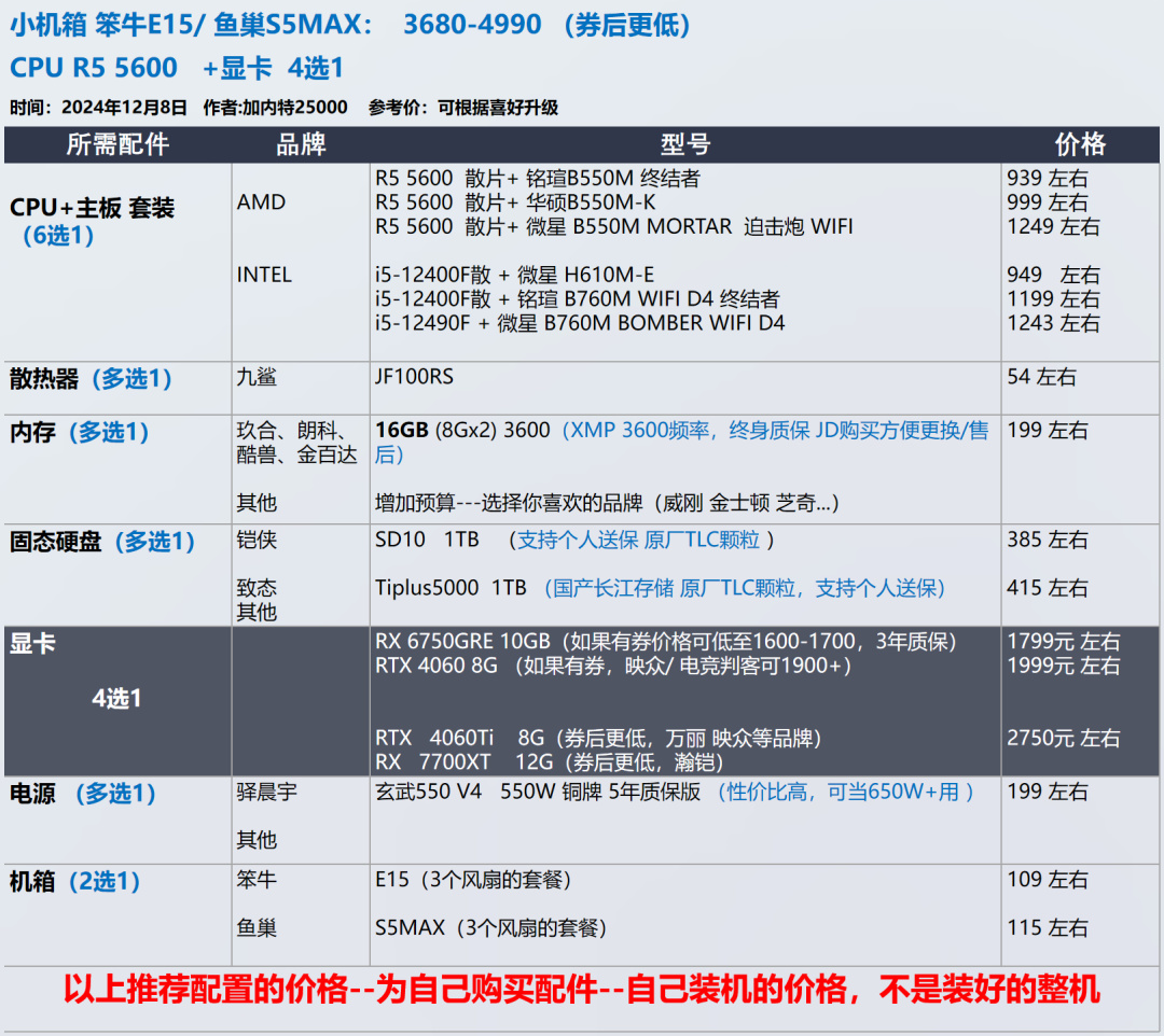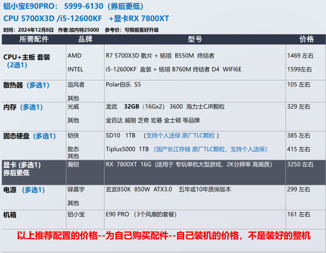 盒友您們好,我是玩機社的加內特25000,2024 12月配置參考分享來了!