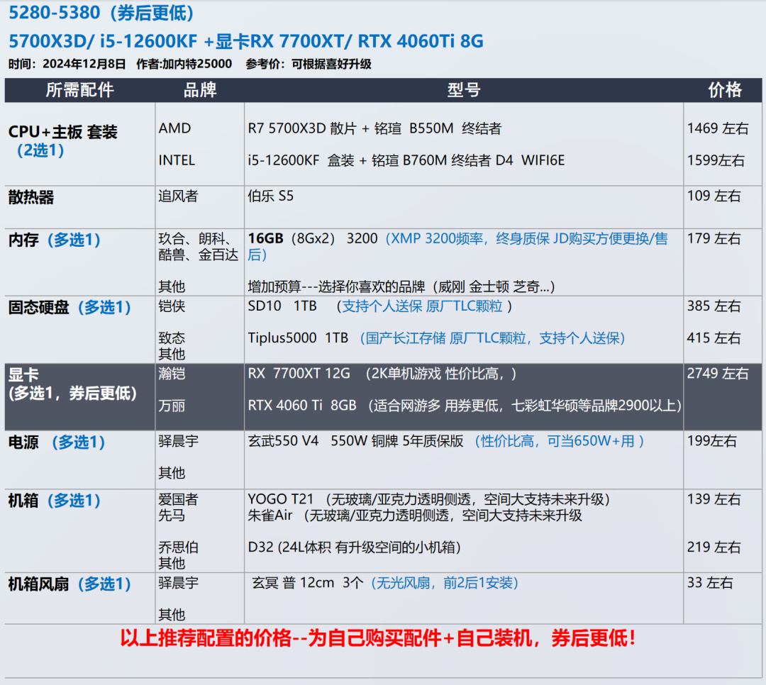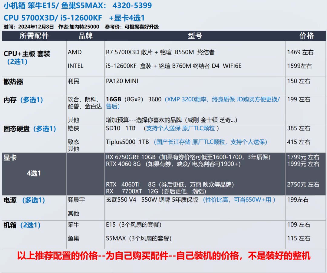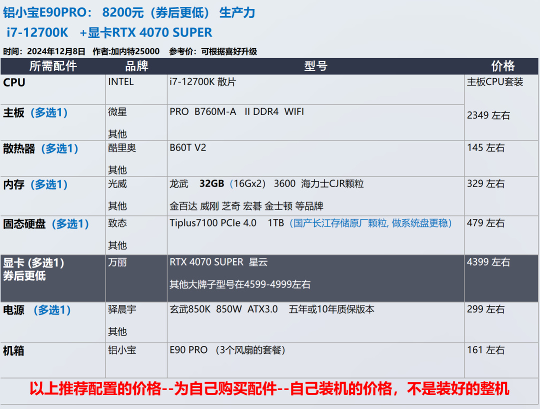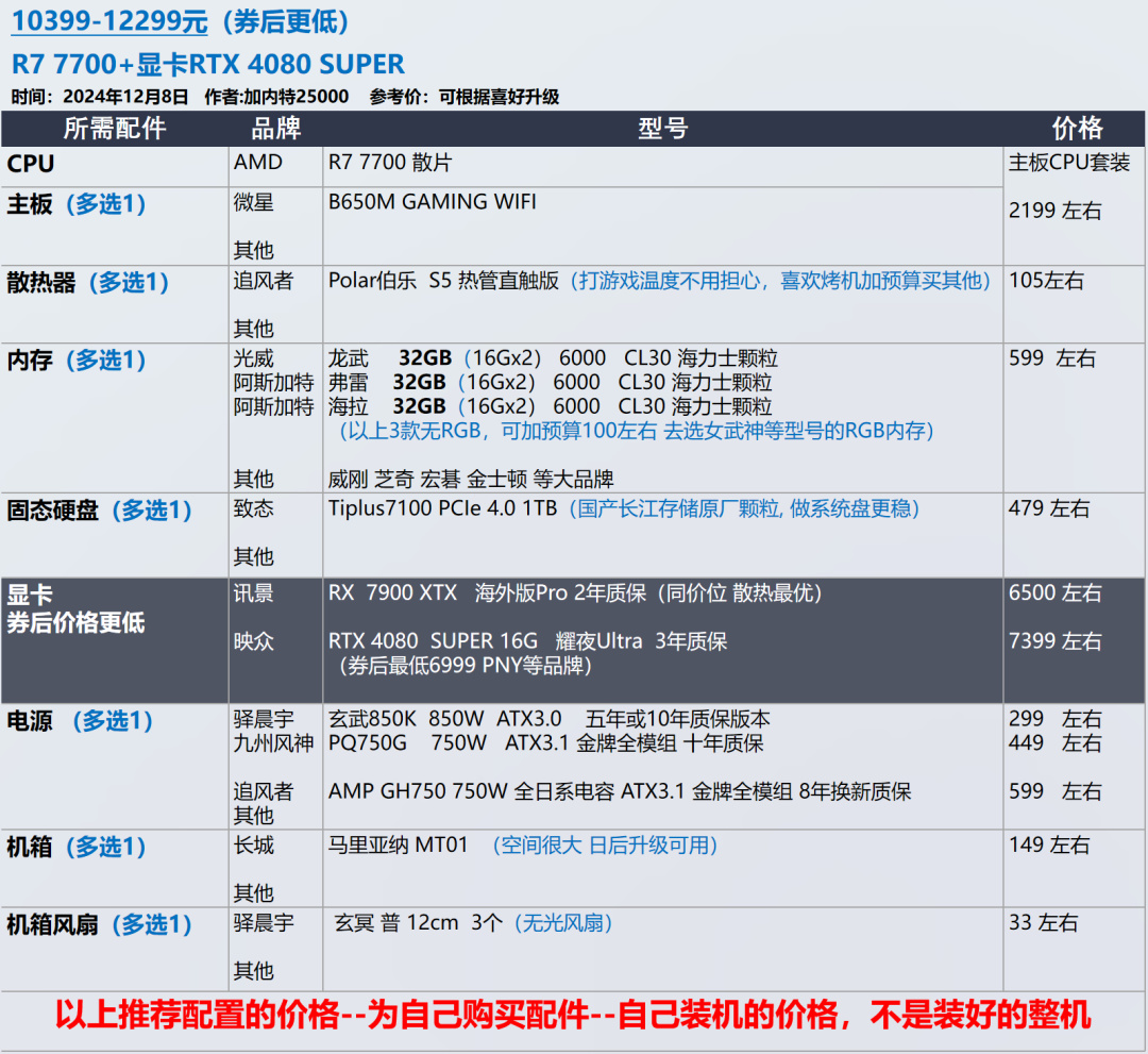 盒友您們好,我是玩機社的加內特25000,2024 12月配置參考分享來了!