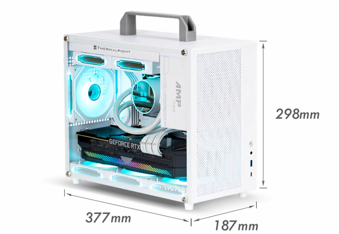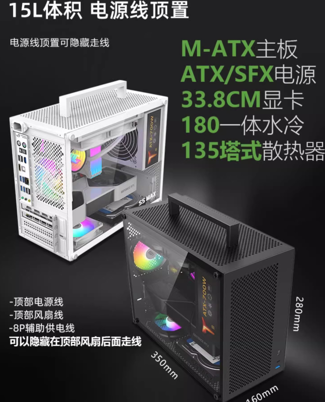比較極限的體積還可以裝的下MATX主板+ATX電源+長顯卡,