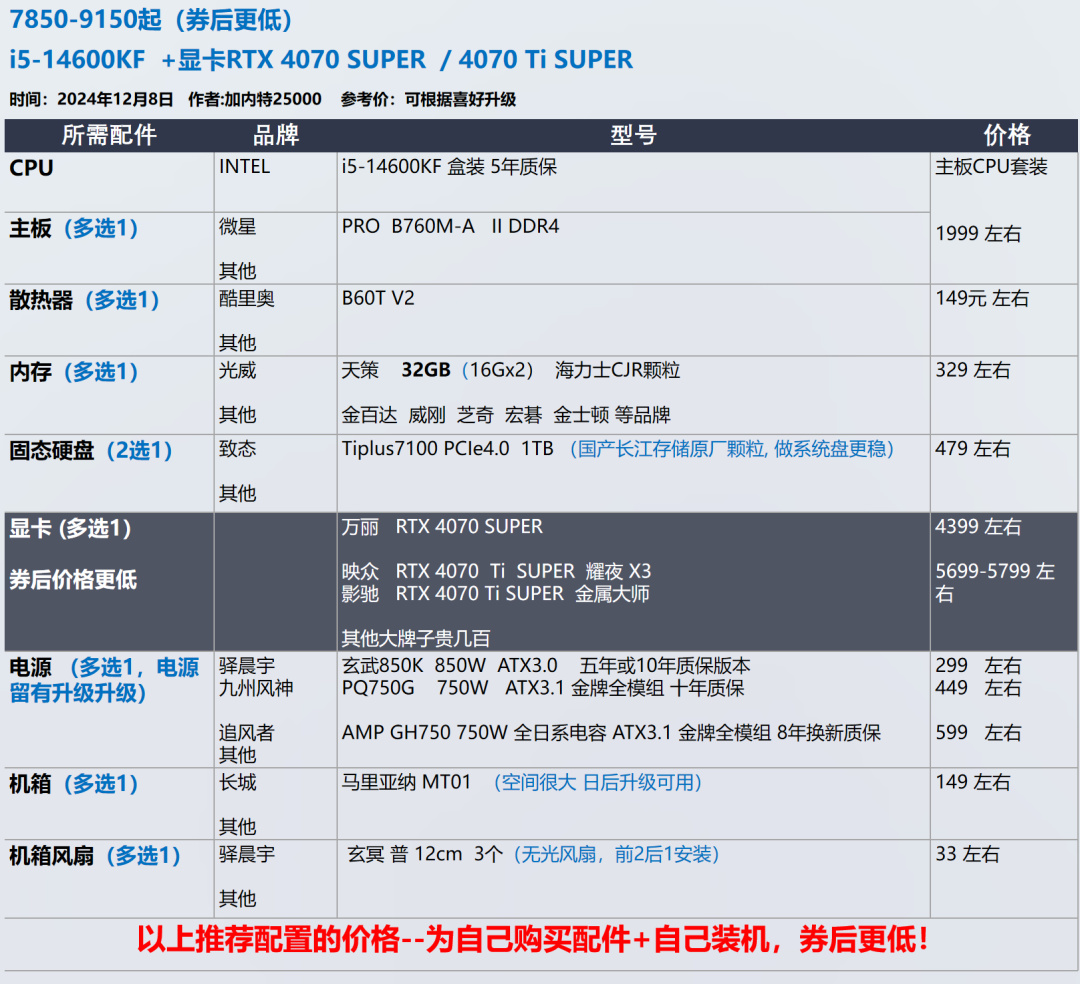 要不要等50系顯卡?2024 12月臺式機DIY配置推薦+裝機教程