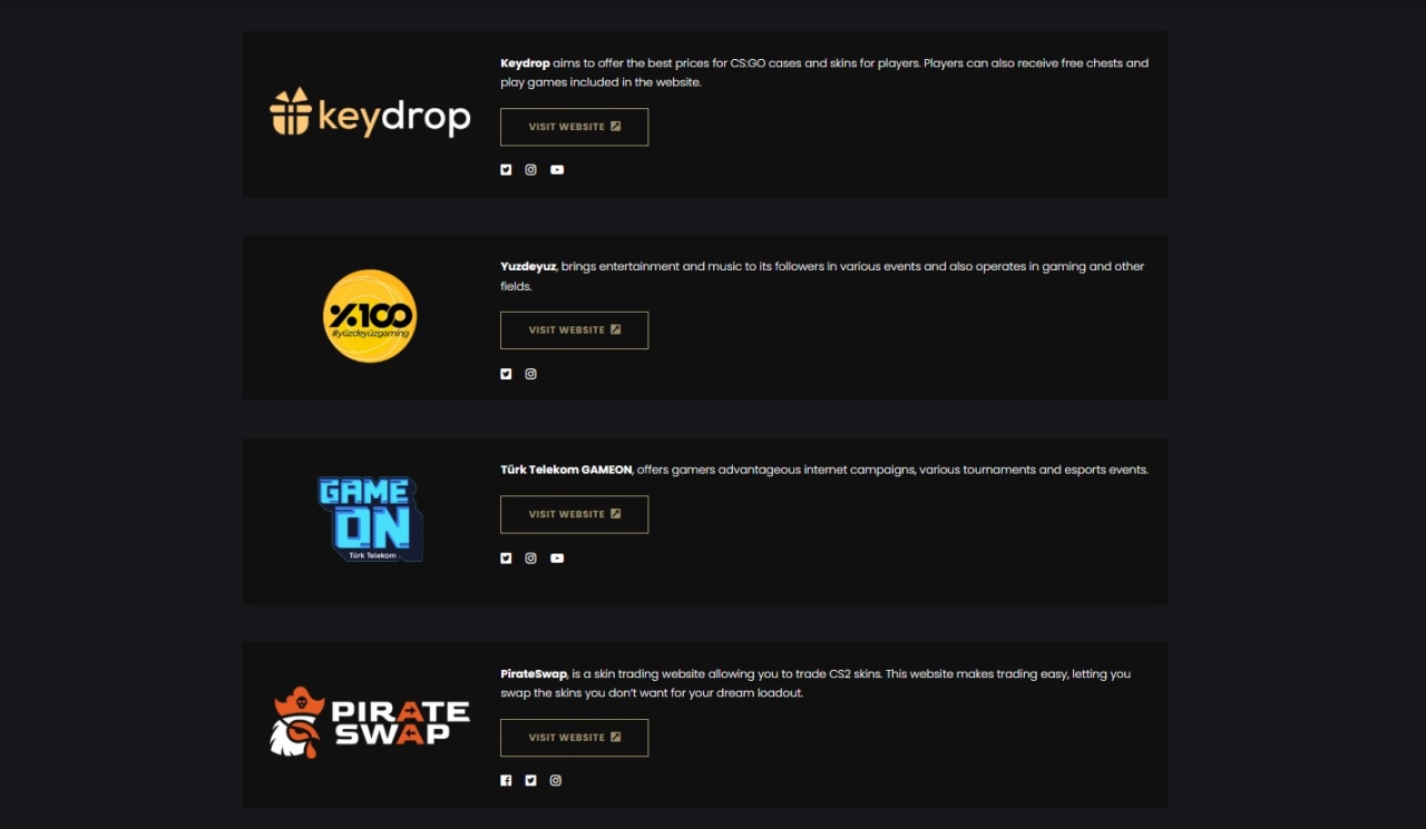 根據官網顯示,EF擁有4傢俱樂部:CS飾品交易平臺Keydrop、音樂服務Yuzdeyuz、電競平臺GAMEON、CS飾品交易平臺PirateSwap