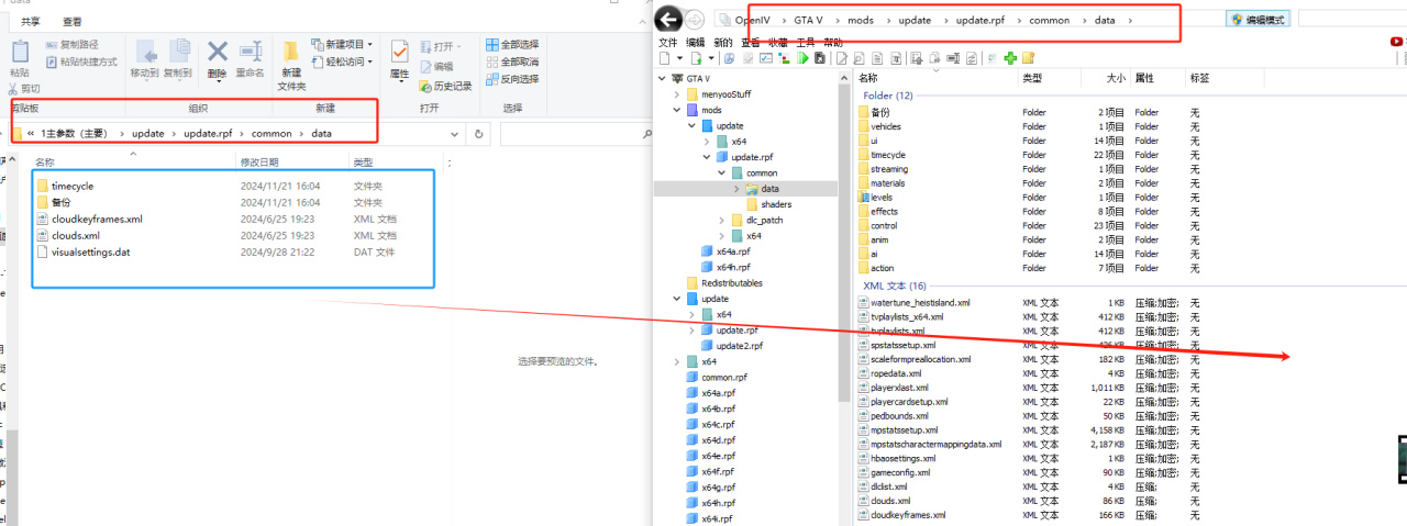 3、把下載好的文件找到主參數(主要)\update\update.rpf\common\data然後在openiv找到路徑