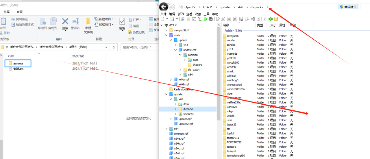 9、極光也是差不多一樣的哈,先拖進dlcpacks裏面