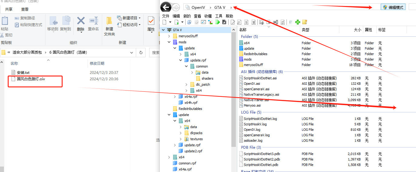 12、國風路燈就將oiv拖進openiv彈窗後點安裝到mods文件夾