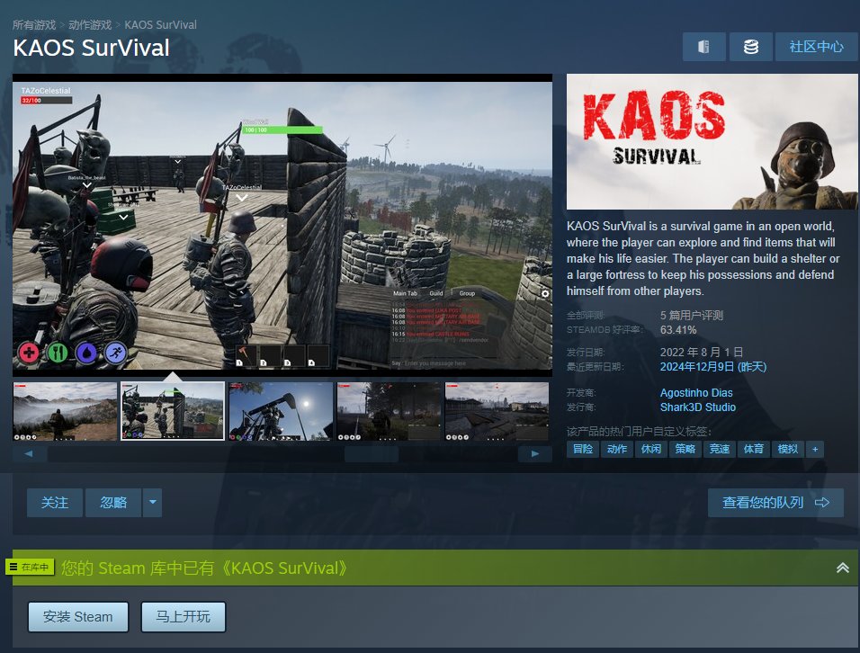 KAOS SurVival是一款开放世界中的生存游戏,玩家可以在其中探索和找到让生活更轻松的物品。