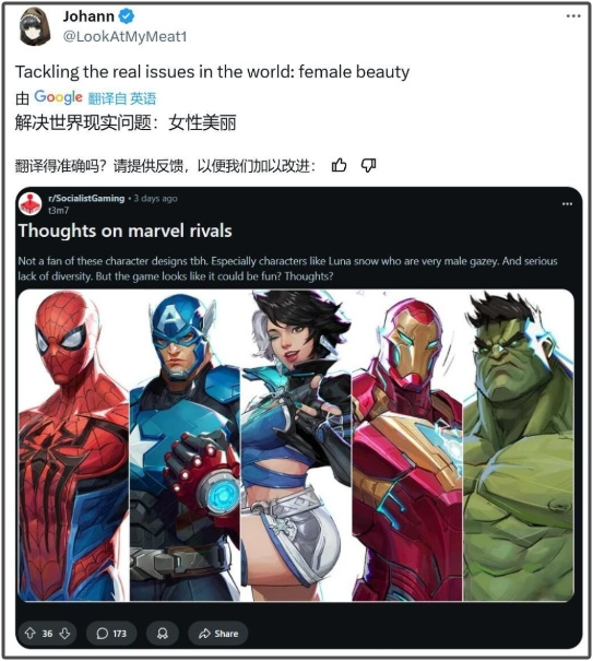 這也不是《漫威爭鋒》陷入的唯一爭議,還有人指責女性角色太過媚男的,