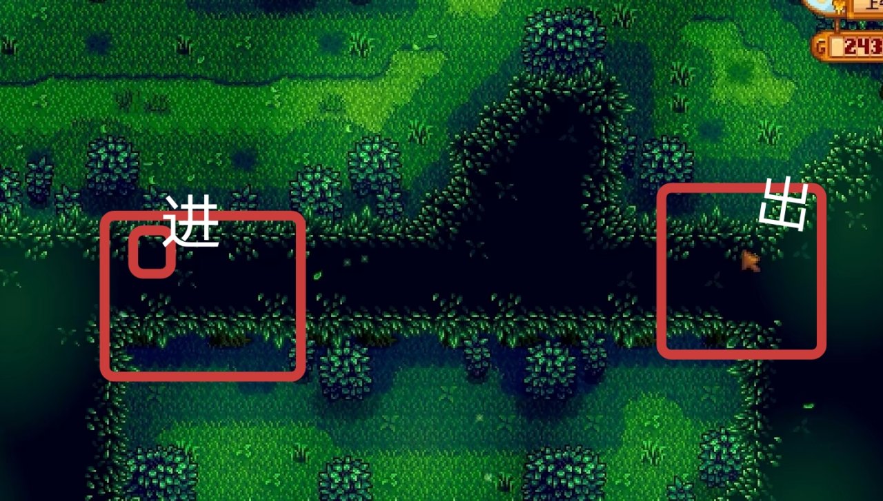 祕密森林下半部分有兩個大樹樁,但是這個地方沒有明顯的出入口,其實我們可以從偏左一點的地方進去然後從靠近出口的地方出來,當然看自己的刷圖順序,也可以反着來。