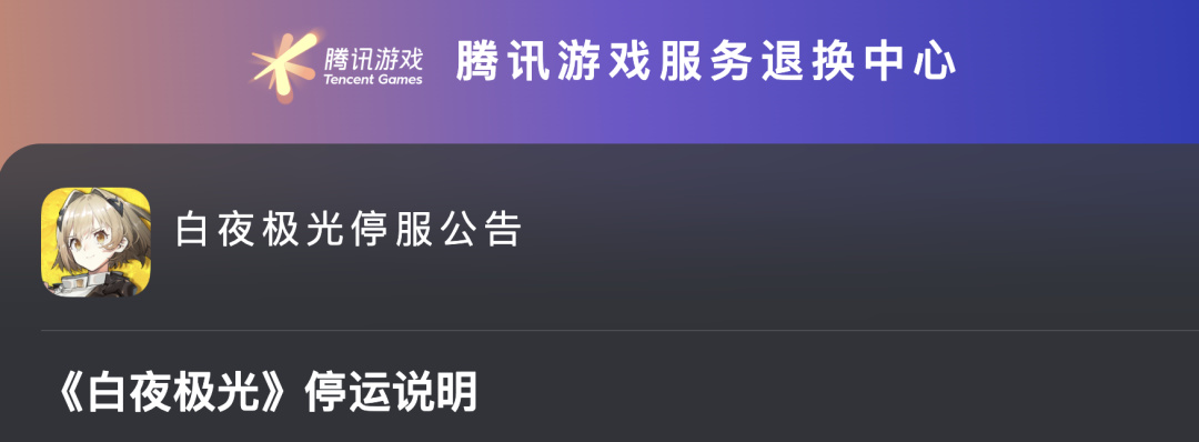 瞅瞅騰訊去年開服的二遊《 白夜極光 》,前幾天剛發的停服公告還熱乎着呢。