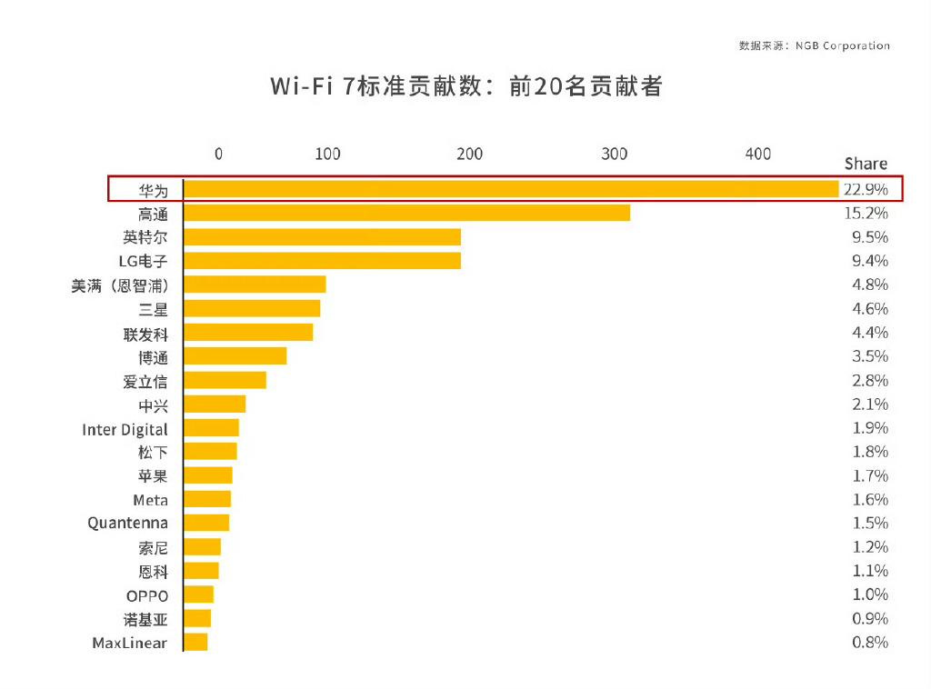 而托尼如此期待 Wi-Fi 8 的原因,除了 “ 填坑 ” 属性的特性之外,是看到联发科其实并不是拥有 Wi-Fi 专利最多的机构,排他前面的很多老大哥,像华为高通,还没发力呢。