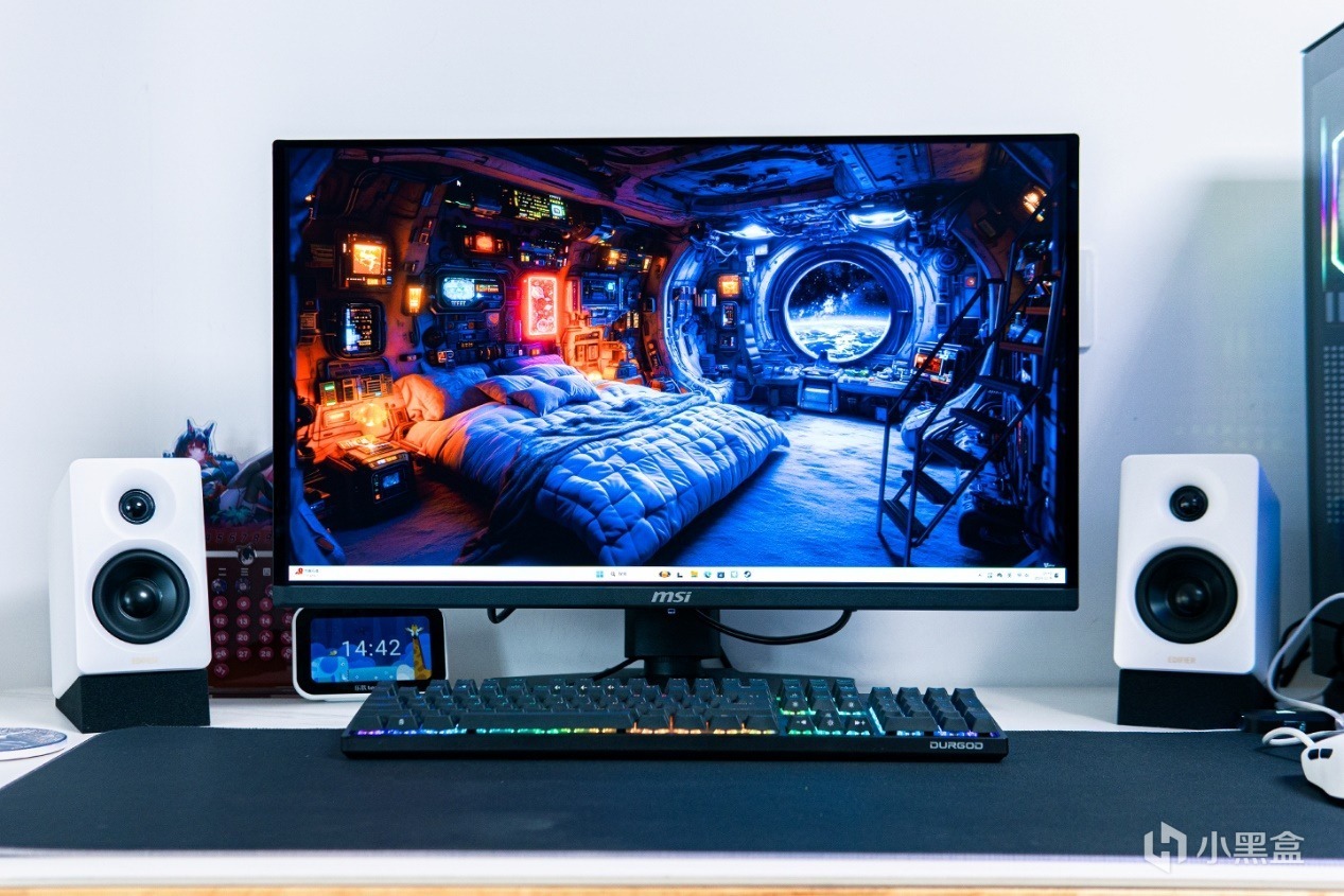 26.5英寸屬於主流選擇,大部分桌面都能輕鬆擺放,我這裏主機也放在桌子上,整個空間還有很多富餘,後面想添加一個豎屏副屏也是OK的。