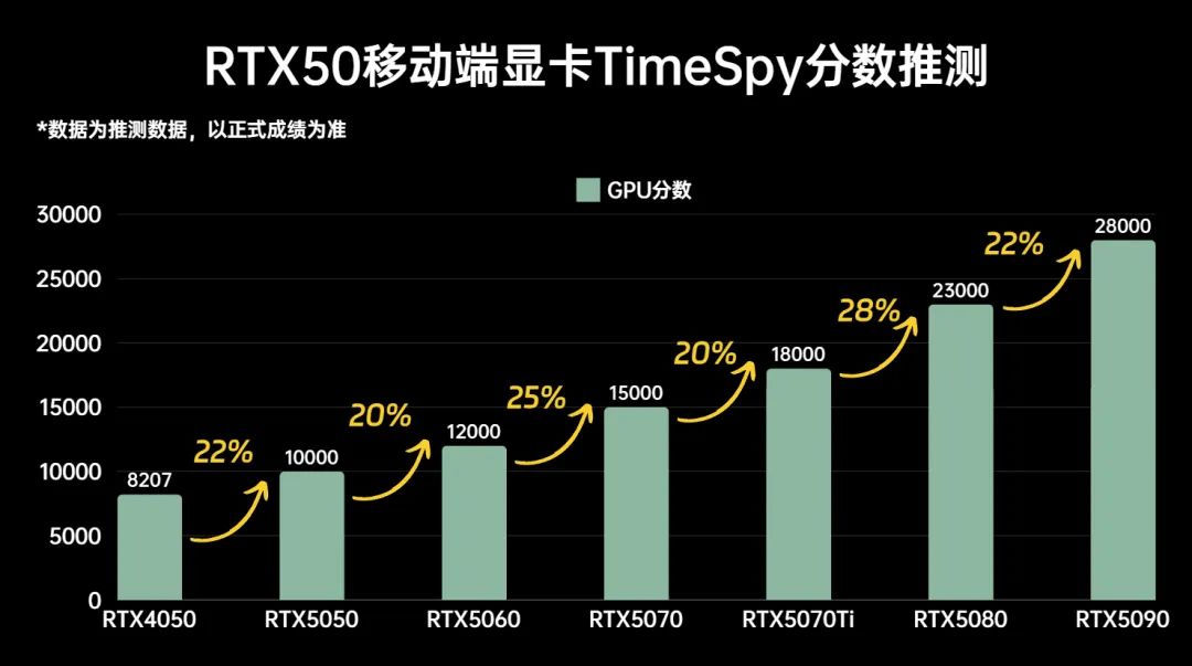 那么,50系移动显卡的性能可以猜一猜了,以下纯属瞎猜,大家切勿当真。