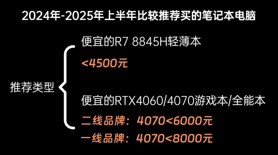 一类是轻薄本,只要价格合适,R7 8845H和Ultra 200V的机型都值得推荐;
