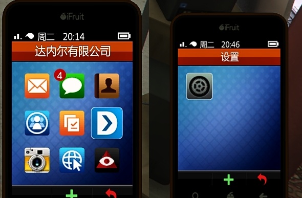 茱迪爲我們的iFruit手機安裝了一款APP,原先的“設置”被移動到了第二頁。