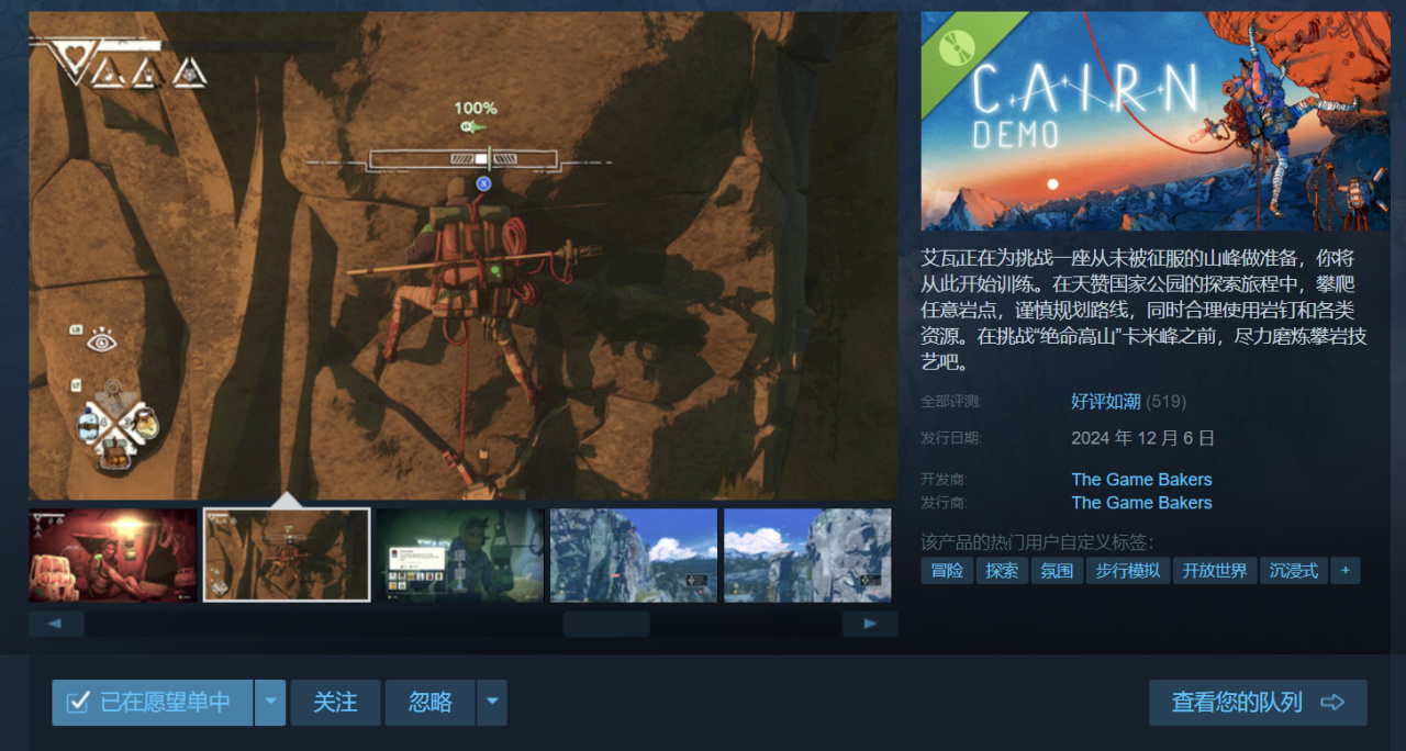 而最近有这么一款游戏的demo突然爆火了它的名字叫Cairn(后面会称呼中文名:孤山远影)