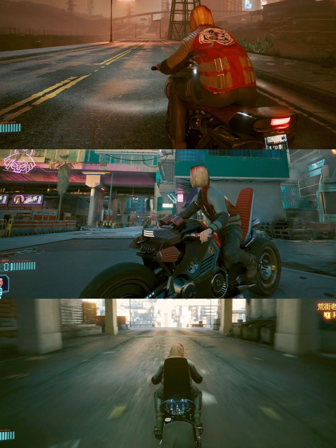 2️⃣載具:開車一定要切換到第三視角!!這個真的很重要,前期我第一視角開車又暈又菜,平均走兩步撞一個人然後被滿城通緝……以及按下手柄R 2的強度可以控制油門,最好不要按到底。 🏍️摩托車的手感>汽車,前期可以開傑克送你的摩托車,做帕南的支線任務蠍子也會送你摩托車,後期有錢了可以去好車中間人買【石中劍】,手感也不錯 ⚠️平時最好多開開車練手感,後面接老船長的任務會有很多開車環節。我剛開始不會開車接了一個義體牛子着火的委託,結果還沒到地方他牛子就爆炸了,阿門:)