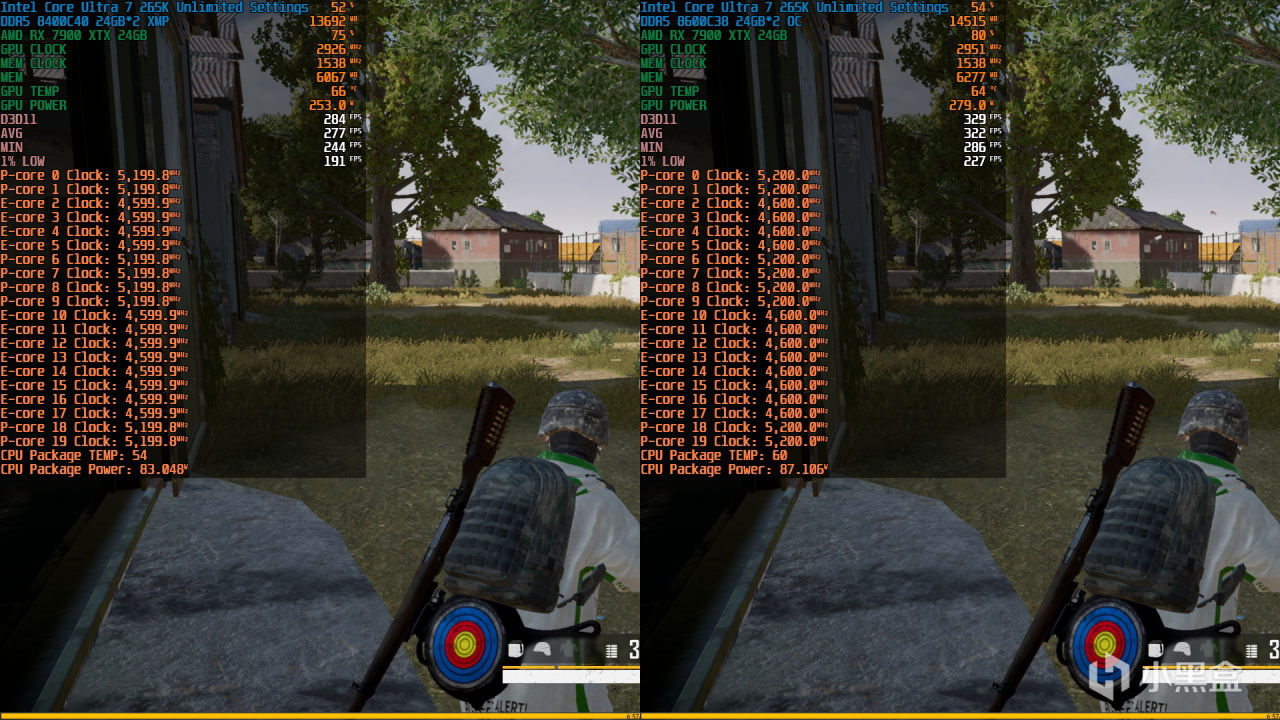 Hermes冰刃 RGB DDR5 8600C38 手动超频平均帧率322fps,1%LOW帧为227fps
