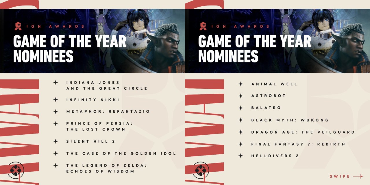 近日,IGN 開展了屬於自己的2024年遊戲年度評選活動。