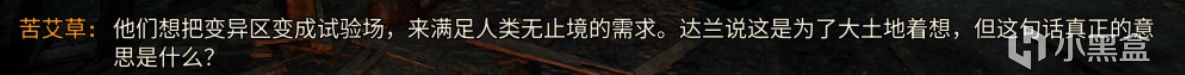 守望忌憚大規模的行動會讓變異區的勢力平衡打破,並且擔心太大的風波會讓他們的“神器”受損,於是他們希望主角作爲中立的勢力幫助他們找到神器。