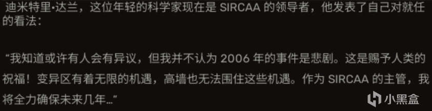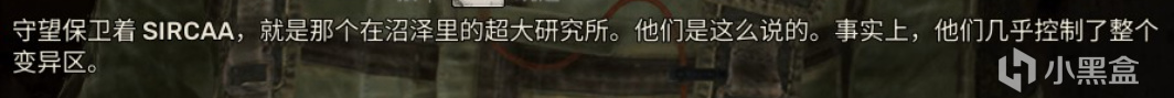 而SIRCAA是由許多科學狂人組成的實驗室,軍方在一系列的事故後進行了深刻的反思和研究,他們認爲自己對變異區已經有了足夠的瞭解,於是成立了sircaa,前作中的重要人物史特列洛克就成爲了sircaa的顧問。