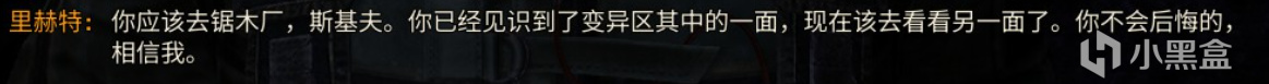 主角正要前去幫助守望尋找神器,裏赫特卻攔住了他,對於這個曾經救過他一命的嚮導,斯基夫心懷信任,於是他聽從裏赫特的指引前往了鋸木廠。
