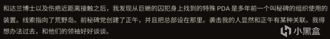 根據從巨蜥那裏得到的線索,主角費盡千辛萬苦終於來到了涅斯特的實驗室門前,但找到的卻是涅斯特的遺體。心有不甘的他從涅斯特的日誌上找到了蛛絲馬跡,而達蘭和守望的人找上了主角。
