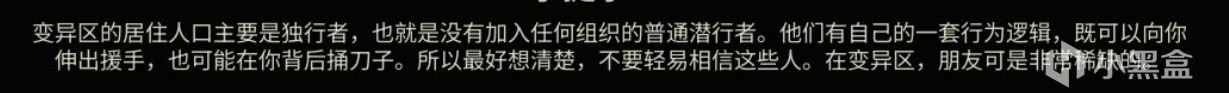 比如說成爲傭兵,幫助守望等等,每個潛行者都是獨立的個體,他們大多數也會選擇一方勢力加入,不過那些勢力往往把潛行者們當作炮灰。