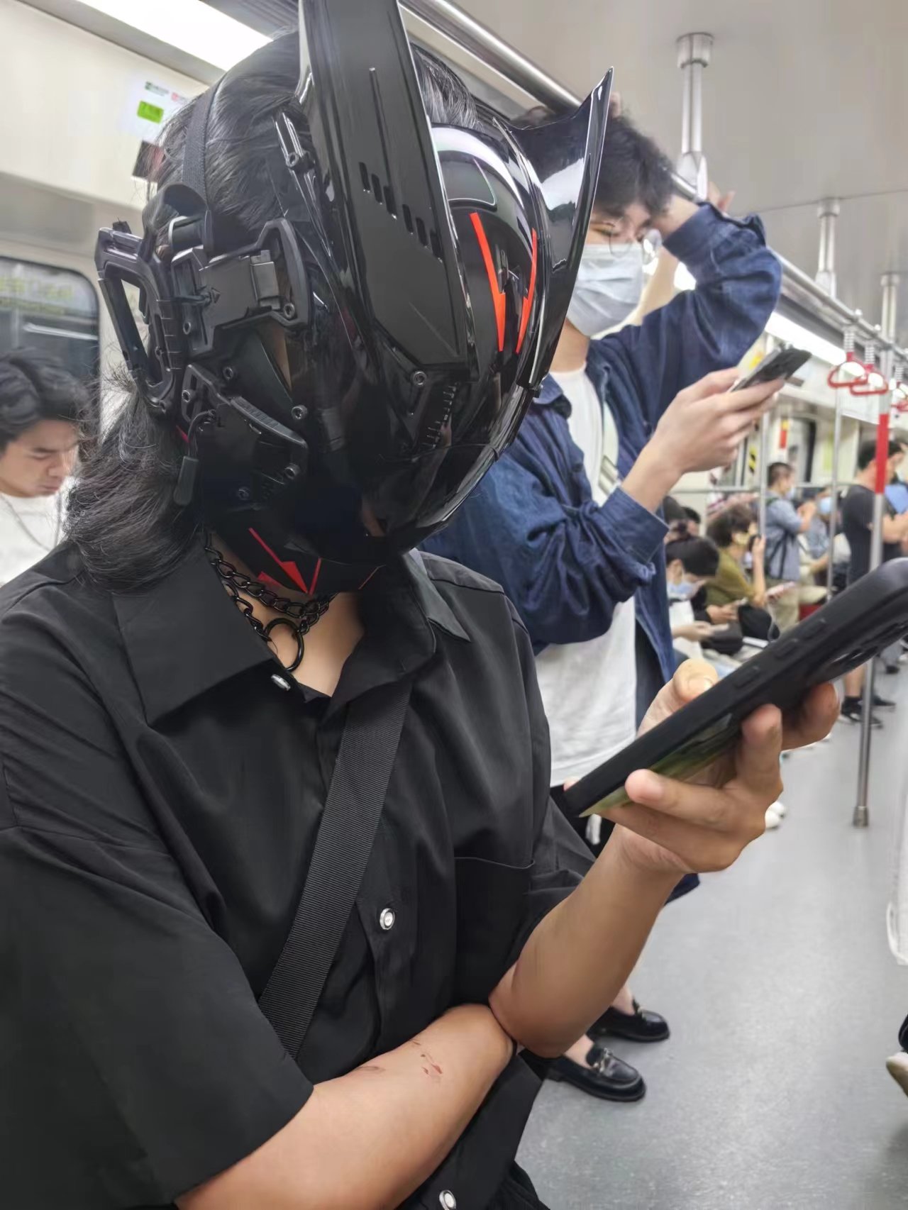 俺其实身材比较瘦小,带面具会显得头很大,肩膀很窄,跟那个竹节虫幽灵图似的,只能靠宽松的衣服撑起来一点。