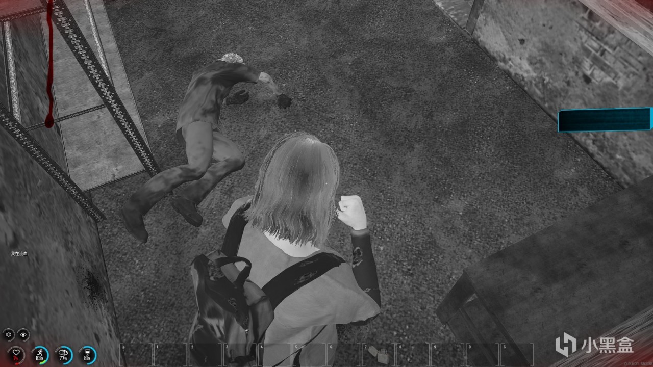 那麼爲了驗證我的第一個想法,我又跑到了比較近的房子搜索物資,順帶尋找武器和醫療包。就在我翻箱倒櫃的時候,衝出來一個人形生物對我發起攻擊。由於我的世界一切黑白,那麼我也是無法準確分析這是人還是什麼,直到他的攻擊和怒吼聲都是充滿野性的,所以我認爲這是一隻喪屍。