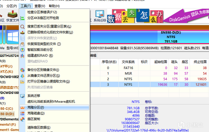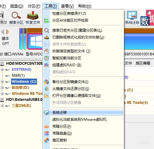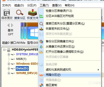 系統遷移完成之後,對於其他的數據盤(比如其他的D盤,E盤等),還需要做一些遷移處理,推薦使用“克隆分區”功能。
