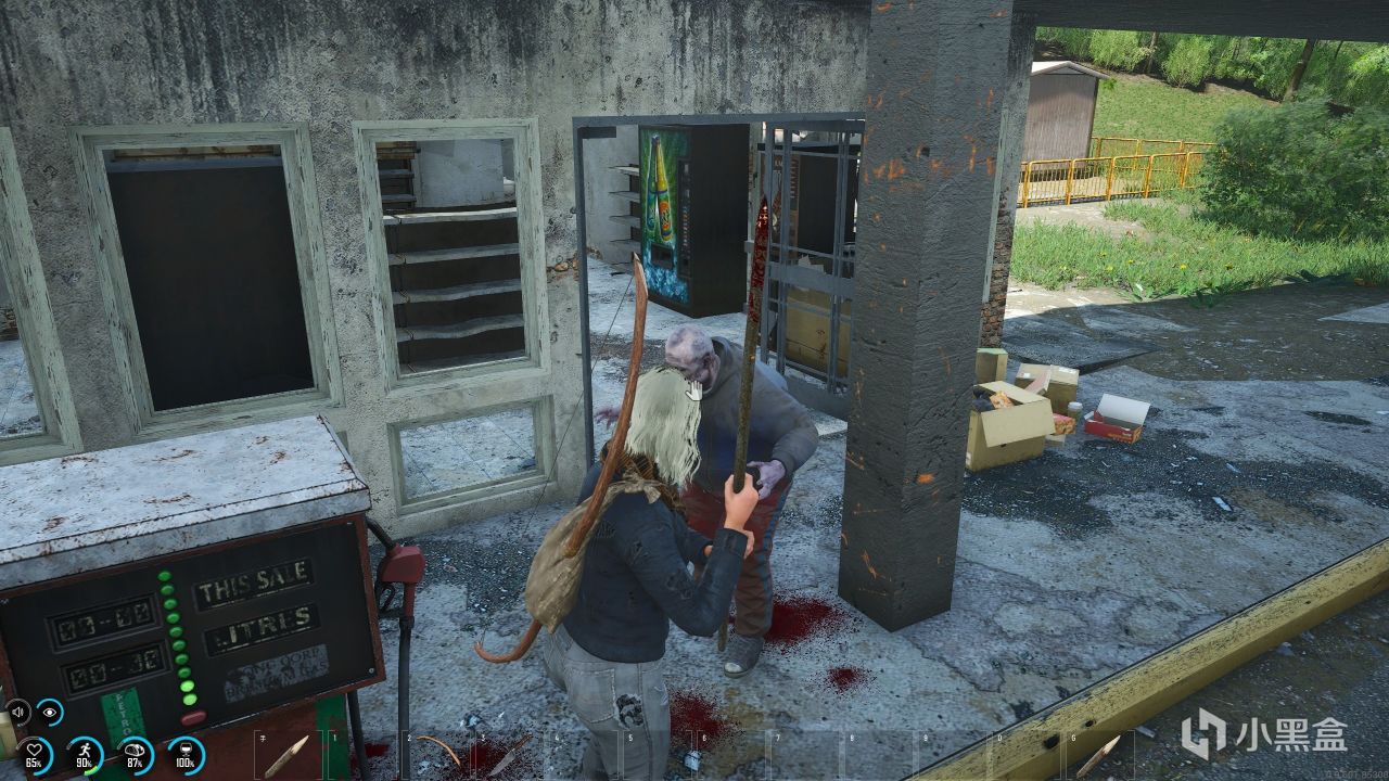 虽然游戏的这些数值在前期大部分时间并不会带给玩家太多的难题,但是制作组却并没有在仿真硬核的道路上停下脚步。游戏中区别于其他开放世界生存游戏的最大地方,也是游戏一开始宣传的噱头的,就是游戏中还原真实的排泄系统,伴随着玩家食物和水分的摄入,玩家需要定时进行排泄,否则就会导致一些数值下降,从而引发严重的后果。