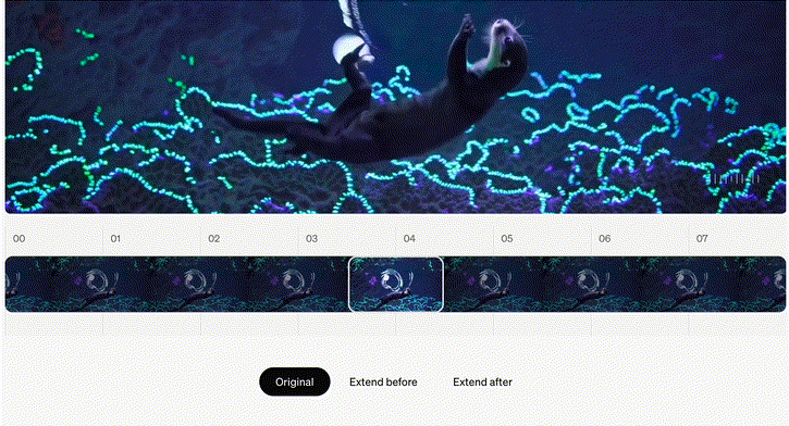 另外, Sora 的发布会上还介绍了 Loop ( 循环 )和 Blend ( 视频融合 )两个功能。
