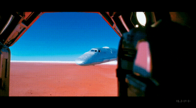 咱直接来看官方的例子,一共 440 帧的视频,前 114 帧的场景 prompt 是 “ 一片广阔的红色景观,远处停靠着一艘宇宙飞船 ” 。