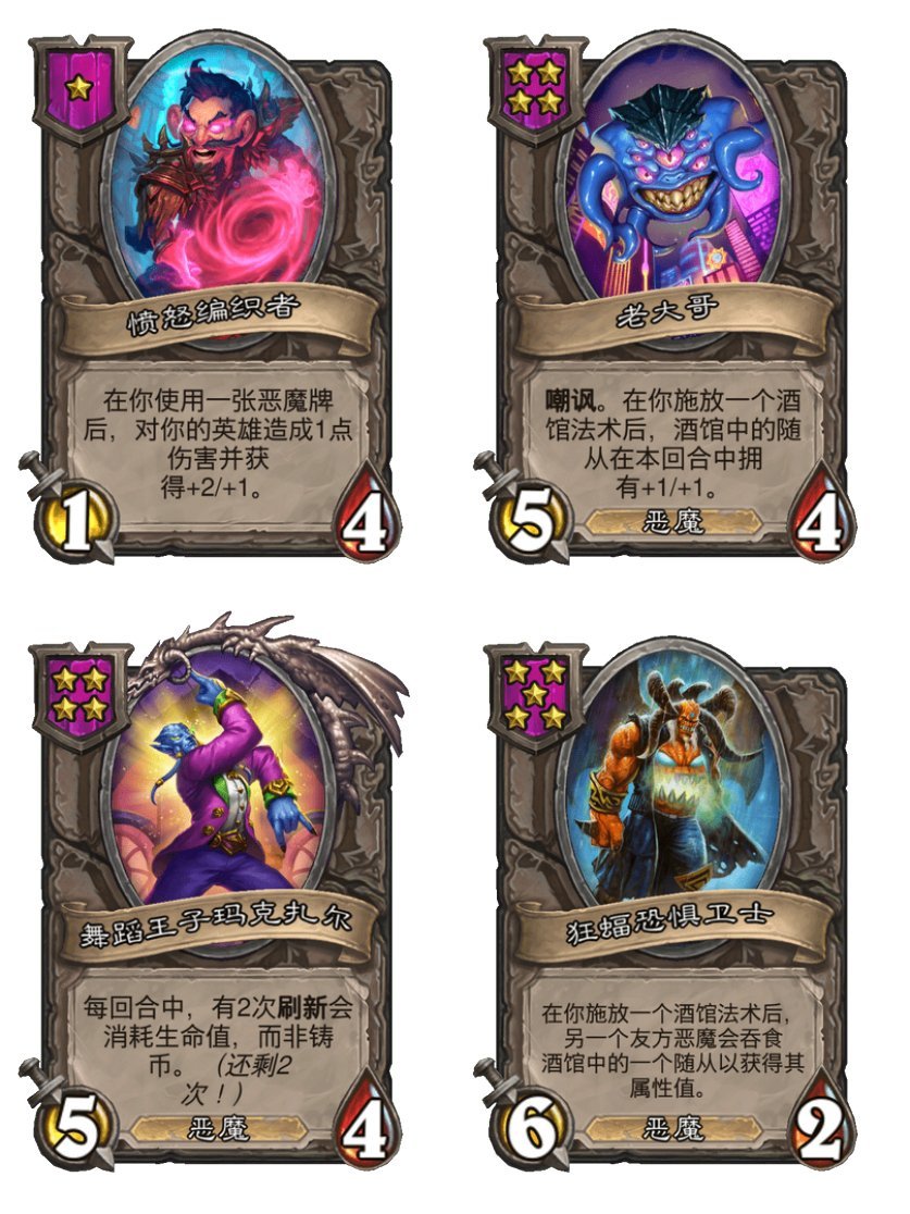 當然上面的隨從也不是都必須湊齊的,比如小粉和刷新惡魔可以互相補位,有金阿克蒙德的話那麼小粉就沒有存在的意義了,可以多做幾個刷新惡魔,每次刷新都能白嫖法術。