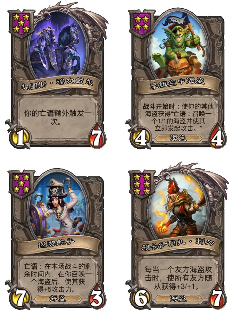 上將被移除後以金幣詐騙犯爲核心的新電錶,經濟充裕,有大哥穩戰力,滾雪球能力極強,天胡情況下節奏幾乎無敵,讓對手難以找到翻盤點,缺點是發育週期過長,在沒有六本海盜的情況下沒辦法提供很好的即戰力。