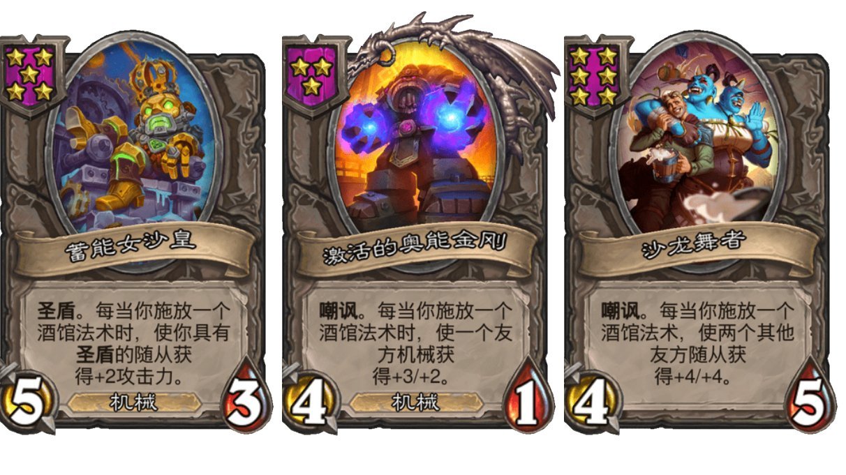 三個非常超模的隨從組合出來的陣容,強度甚至力壓摩托豬一頭(成型快,加快本局節奏)