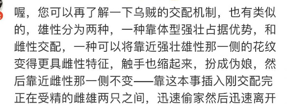 畢竟她們啥也不用做,就有三種不同類型的舔鳥又是築巢又是保衛領地又是變換外形來討她們歡心。