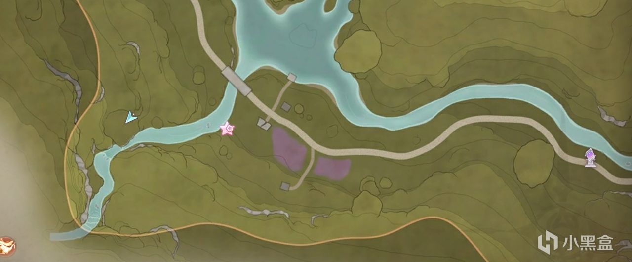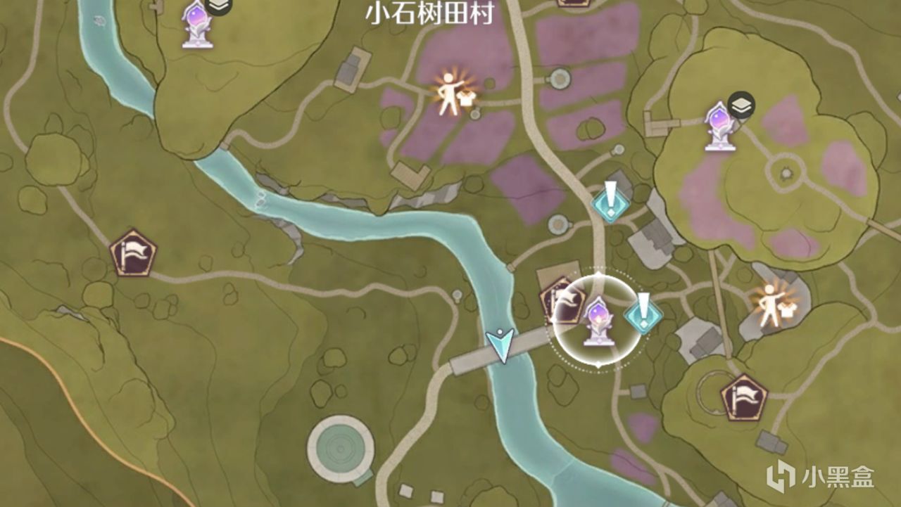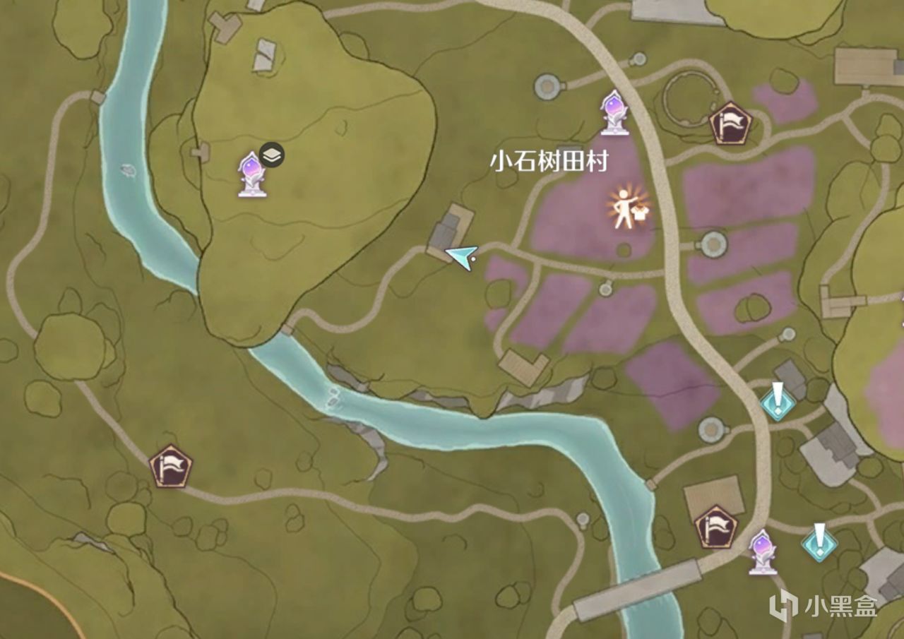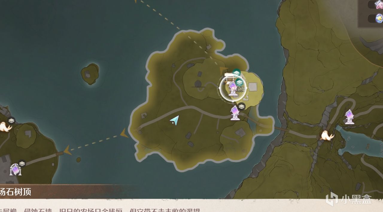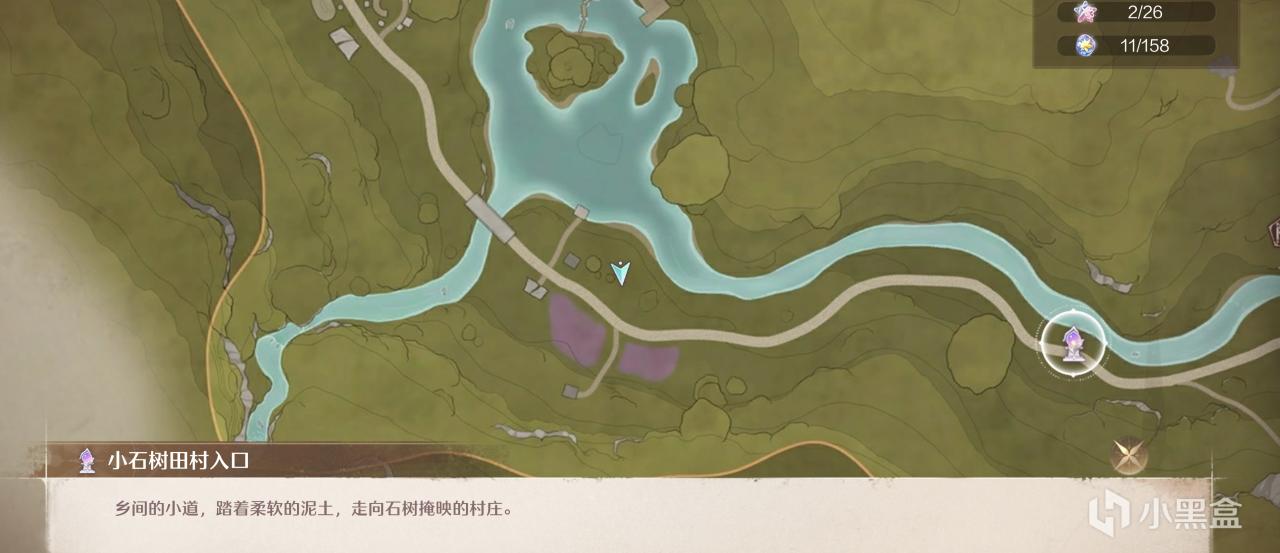 開啓小石樹村入口傳送點後,走過去到圖示位置,然後湖中間就是需要拍攝的物體,先別急着走!