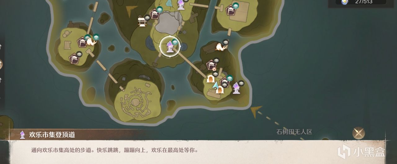 記得走歡樂市集登頂道傳送點走獨木橋過去,因爲這個打卡點在山頂,你傳送到旁邊那個傳送點沒有用!