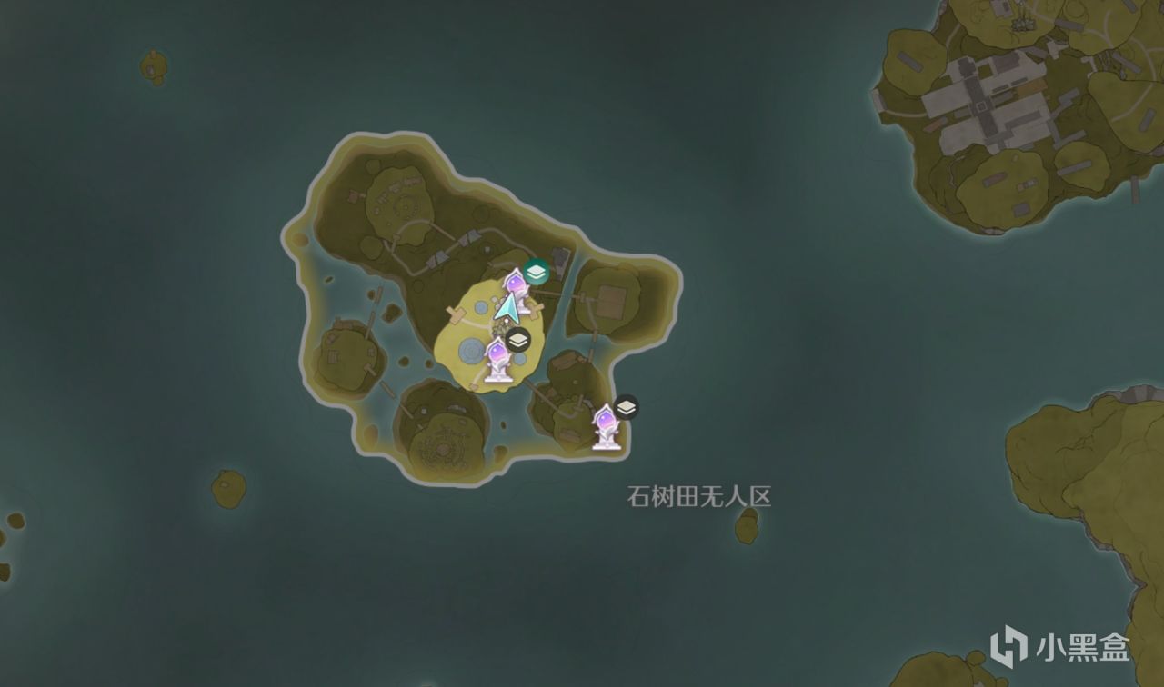 位置就在石樹無人區中間島上的上面一個傳送點,進門就是打卡地點