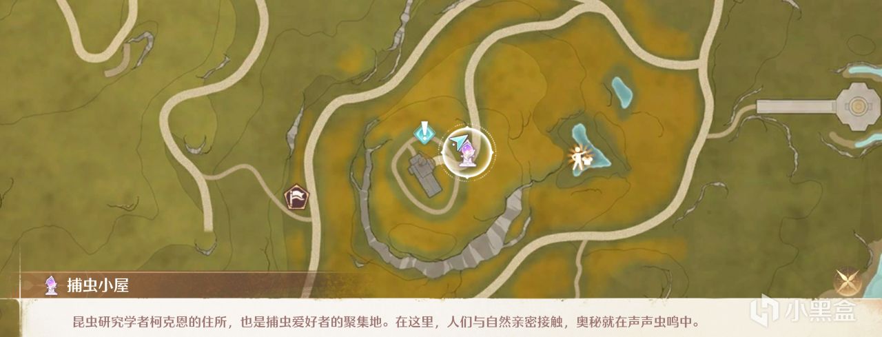 就在捕蟲小屋傳送點的旁邊,記得稍微把鏡頭拉遠一點點,不然可能識別不上