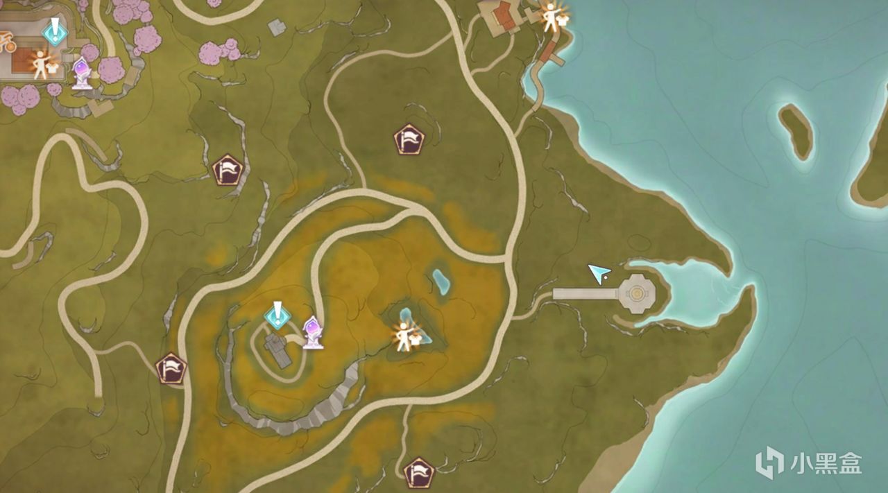 從剛剛的打卡點,往上地圖左邊走,需要走到最高點,記得繞到你前進方向的右邊坡走上去