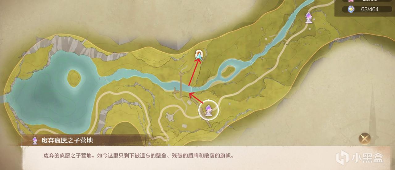與其說是廢棄瘋願之子營地,倒不如說是熒光海,風景絕對的美!從圖中箭頭位置過去,有一個很深的洞,跳下去,裏面就一條路,有怪物需要探索一番