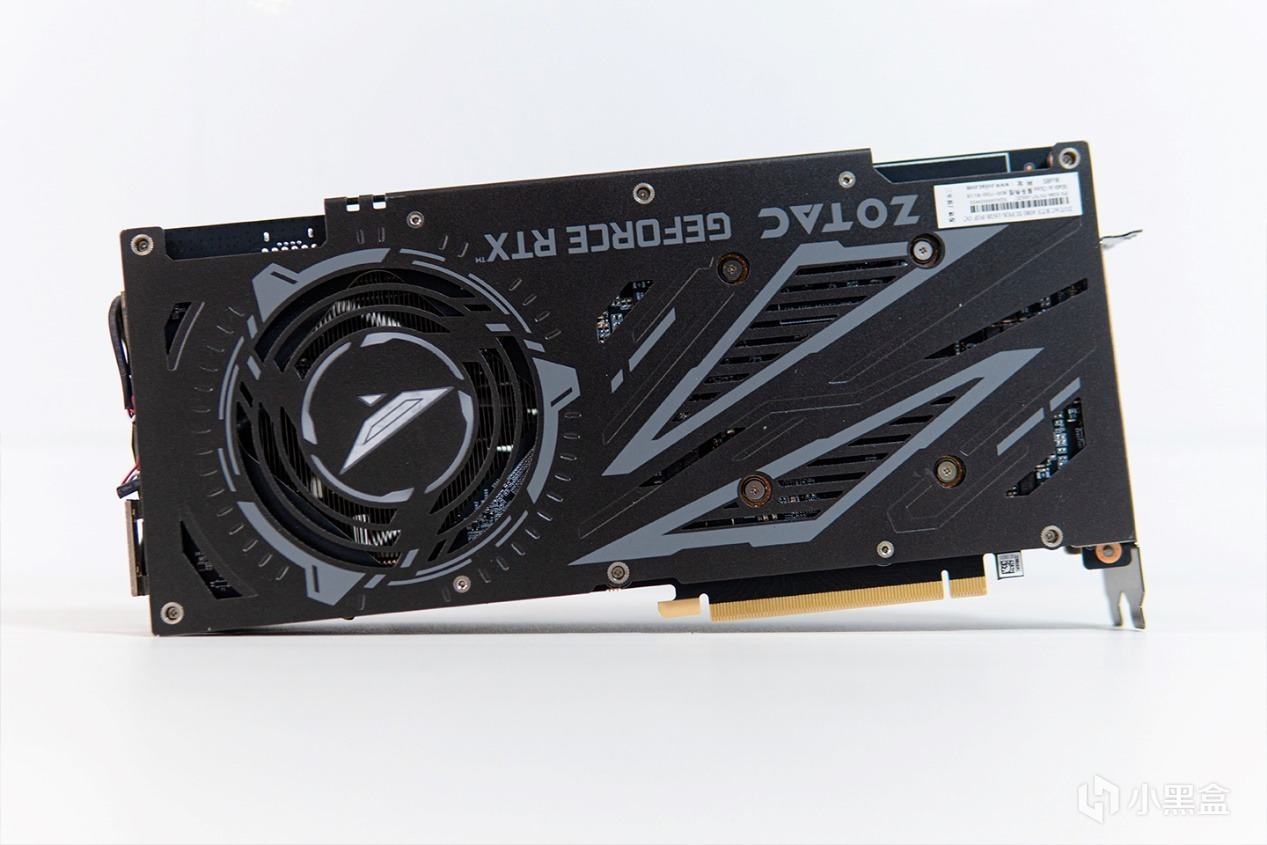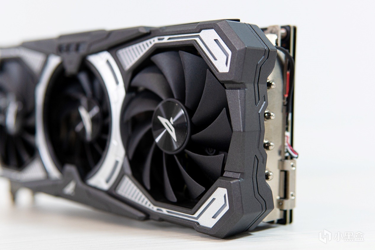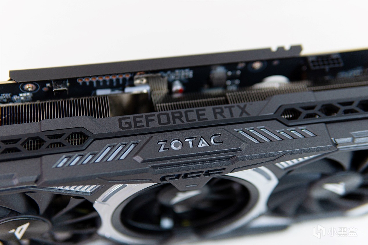 这个厚度使得接近索泰RTX 4080 SUPER 16G PGF OC占用近4个PCI插槽,还是挺夸张的,从侧面可以看出其使用了6根冰脉2.0复合热管,配合内部大VC模组和高风压风扇,散热能力不容小觑。