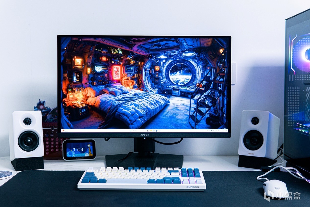 微星对这块屏幕还进行了出厂校色,色准ΔE≤2,配合镜面OLED超高对比度,显示画面立体生动,观感明显优于主流的FASTIPS和HVA面板,游戏方面它也支持ADAPTIVE SYNC功能,高刷画面不会有撕裂,调节方面,微星MAG 271QPX QD-OLED E2底座支持俯仰、升降、偏转、旋转,姿势丰富。