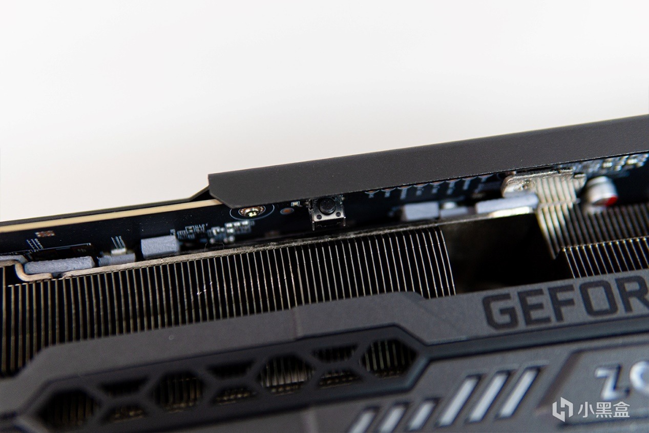 名称带OC,自然有双BIOS可选了,显卡侧边按键可以一键超频,默认BIOS boost频率为2550MHz,超频可达到2655MHz,频率提升近4%。