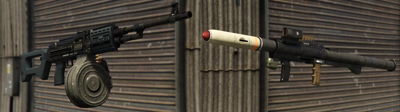 本期主打 - 戰鬥機槍 + 制導火箭發射器。戰鬥機槍本身中規中矩,但支持 MKII 升級和擴容,200 發超大彈容量保證輸出下限;制導火箭發射器基本不能用於 PVP,但給新人用來對付敵對 NPC 的飛行載具倒也夠用。
