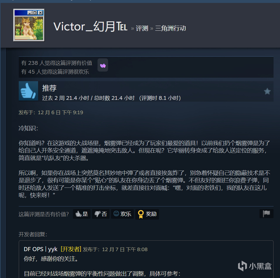 比较有趣的是,我看到很多玩家提到了烟雾弹:由于之前版本里烟雾弹道具被滥用,导致玩家戏称三角洲为“吸烟战区”,目前已经被调整。