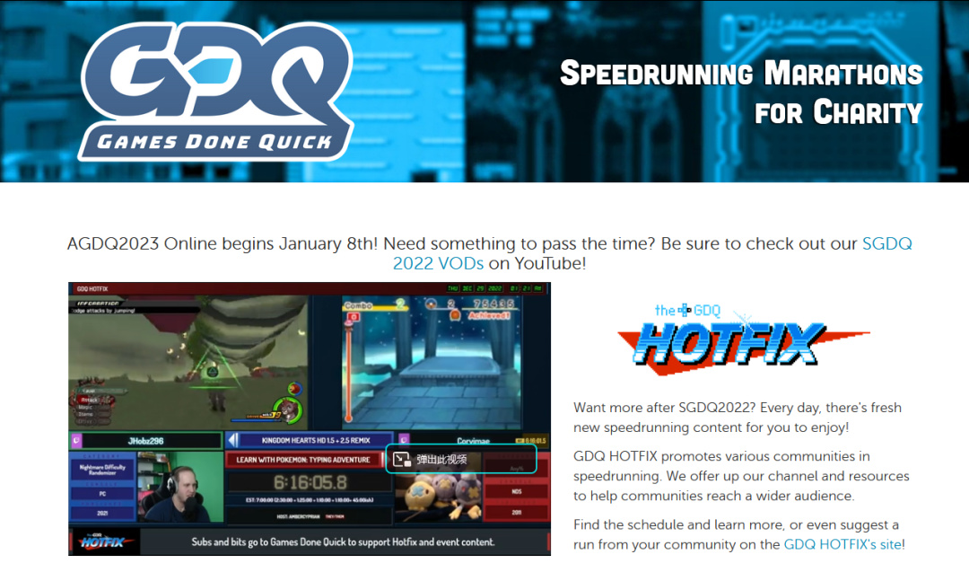 2010年,第一届游戏速通大会Game Done Quick(GDQ)成功举办,并一直以每年两届的频率持续至今。