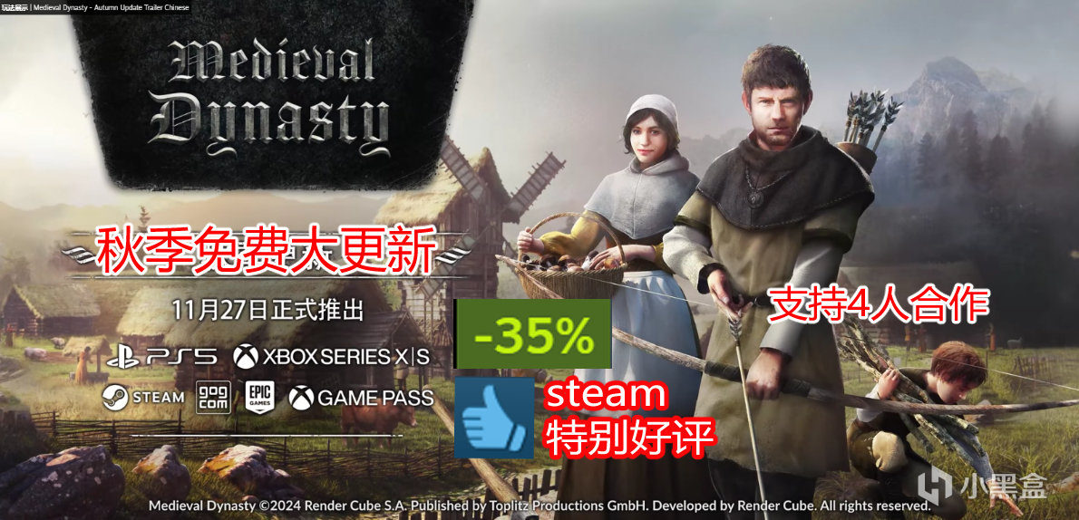 《中世紀王朝》是一款由Render Cube開發、Toplitz Productions發行,最初於2021年9月23日在Steam平臺發佈,並於2022年10月6日登陸Playstation 5和Xbox Series X/S平臺。目前在Steam平臺正在進行促銷活動,遊戲現已打65折,原價139元,現在只需90元即可購買!特惠活動將持續到12月19日,大家千萬不要錯過這個機會!快叫上你的室友或朋友一起購買,一起享受遊戲樂趣吧~ Steam商店鏈接點這裏