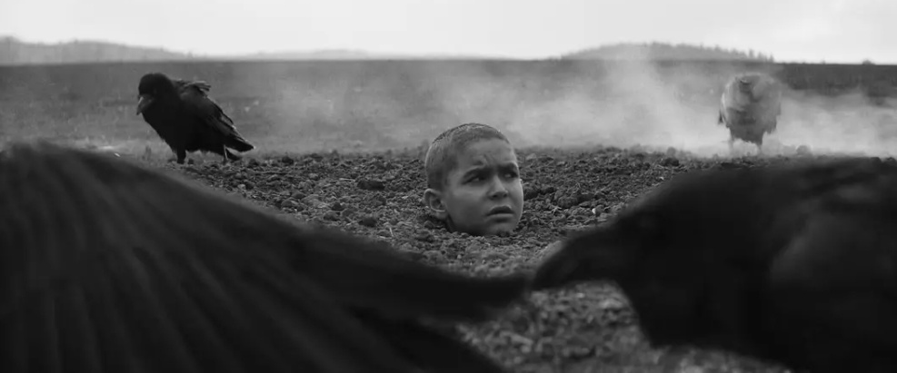 影片通过精炼丰富的细节与简洁精致的排布,深刻描绘了那个时期的人性全景,被涂污的鸟成为无法忽视的意象,寓意着被驱逐离群的个体在极端环境下的悲惨境遇。